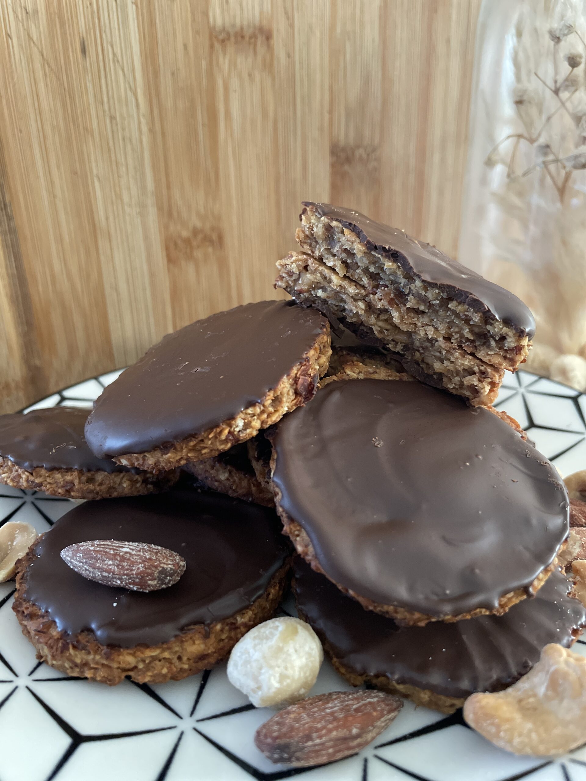 Et parce qu’on ne résiste jamais à une touche chocolatée, un léger nappage de chocolat fondu vient sublimer ces petits biscuits rustiques. Résultat : une texture contrastée, un goût intense, et une gourmandise qui fait oublier qu’ils sont sans farine.