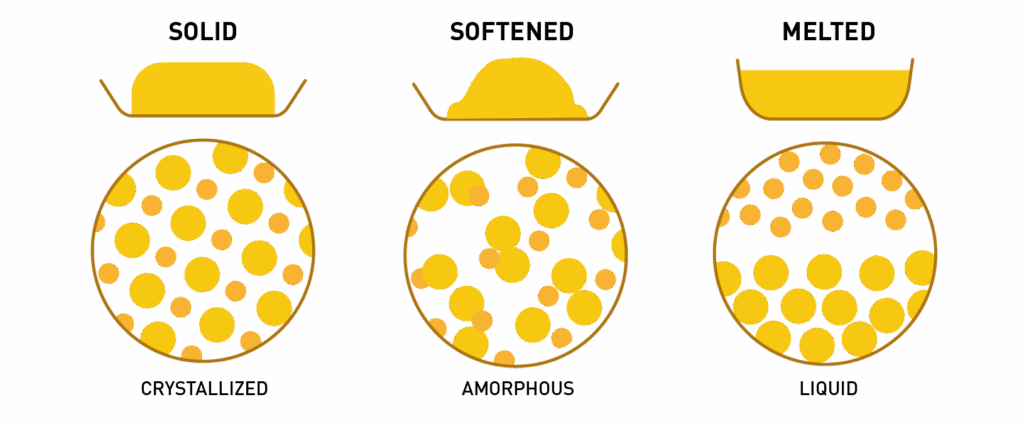 When cold or below 25°C (77°F), butter crystallizes, which gives it its firm texture. Often used for pastries and puff pastry, you can choose a hard margarine as a plant-based alternative.